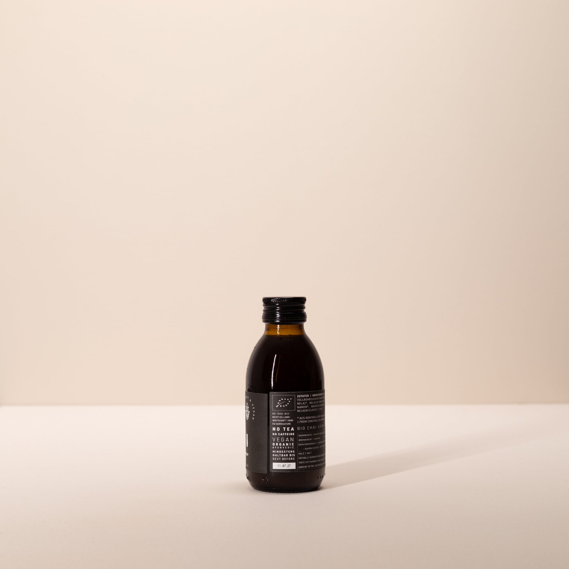Sensorik: rot-bräunlicher Zuckersirup mit wässriger Konsistenz und intensivem Chai-Geschmack